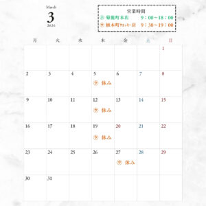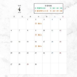 2026/03/18に投稿 投稿者 expectation 店休日のお知らせ(3月21日~4月20日まで) 店休日のお知らせ(3月21日~4月20日まで) WECKY支店(植木町)は、基本毎週木曜日となっております。 尚、諸事情により急な変更もございます。ご理解いただけますと幸いです。 菊鹿町本店につきましては、4月20日までの店休日はございません。 ★20日以降は、わかり次第にお知らせいたします。 今後の本店の店休日について、週1回の店休日を計画する予定です。(開始日はまだ未定です) 投稿ナビゲーション過去の投稿: 年末年始の営業について