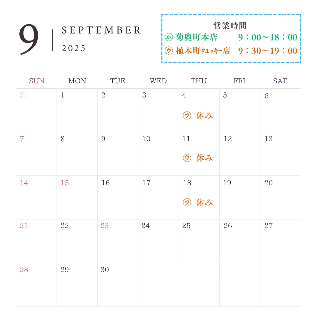 8月の店休日について