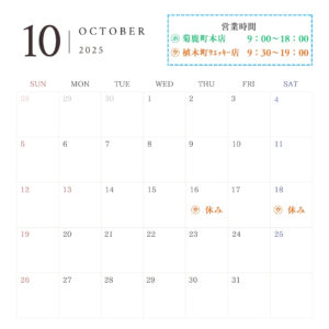 菊鹿町本店につきましては、10月20日までの店休日はございません。